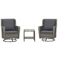Patio Bistro Set, Porch Furniture With 360 Rotation & Rocking Function,, Gray